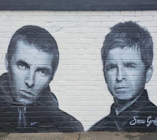 Oasis: Mural em Manchester de Noel e Liam Gallagher