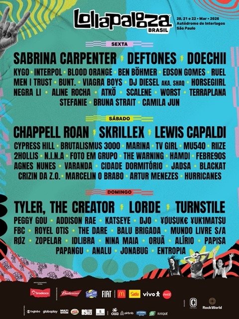 Em 2026, o Lollapalooza terá três dias de festival: 20, 21 e 22 de março.