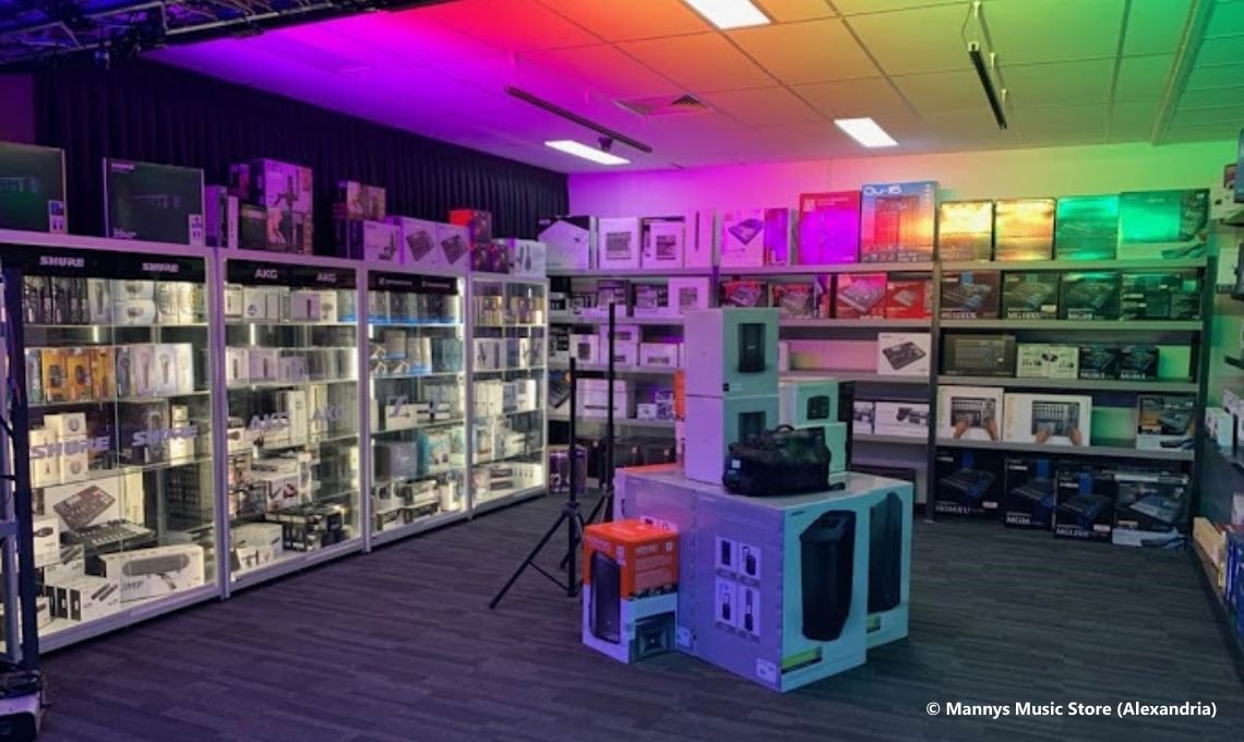 A Mannys Music é uma famosa rede de lojas de instrumentos musicais na Austrália. Essa unidade está localizada em Alexandria, subúrbio da cidade de Sydney.